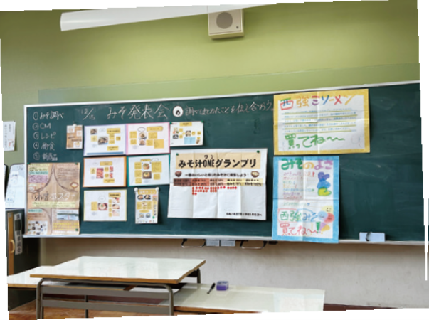 その2か月後には味噌業界が抱える課題解決策発表会」を同校内で実施し、総合的な学習の時間における探究活動へと発展しました。